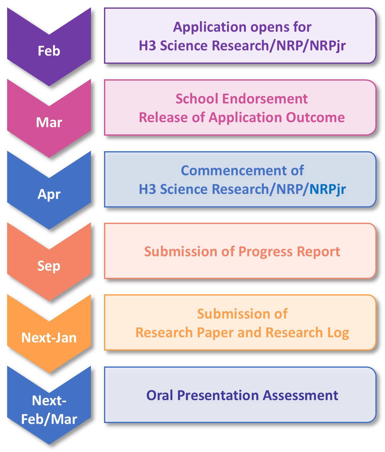 NRP participants will undertake eight months of research activities from April to December, either individually or in pairs, culminating in the submission of a Research Paper in January of the following year and an Oral Presentation Assessment in late February/early March.