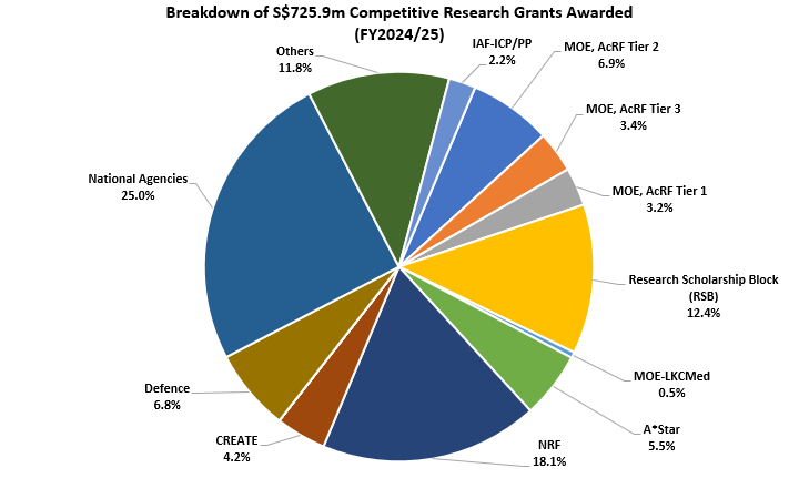 The Ministry of Education's (MOE) Academic Research Fund (AcRF) encompasses three tiers of research grants, with Tier 1 grants being the smallest