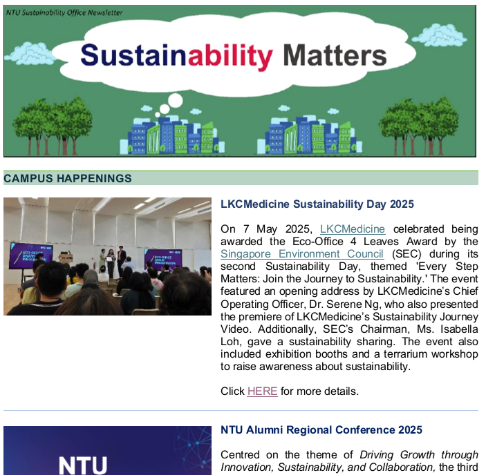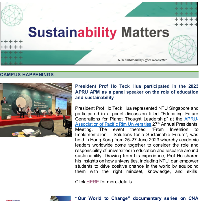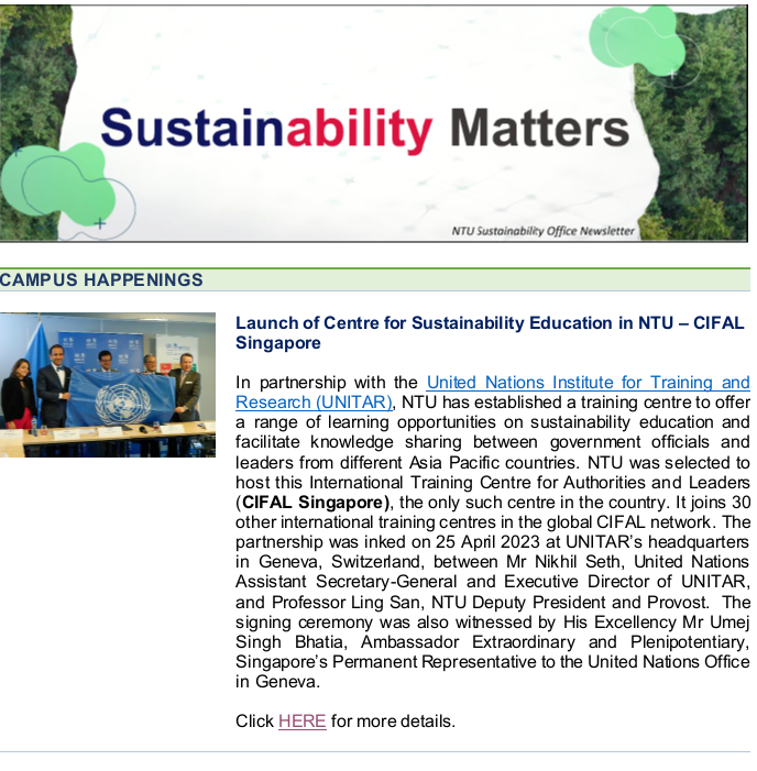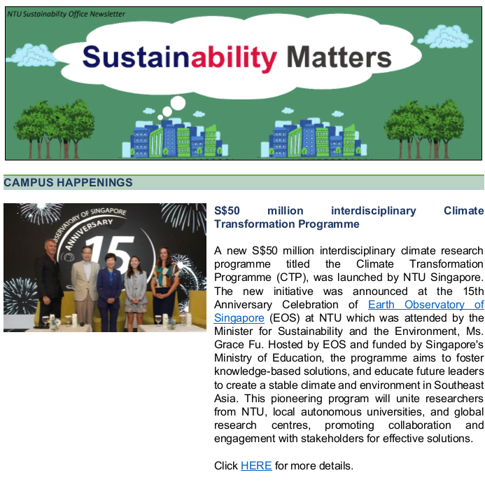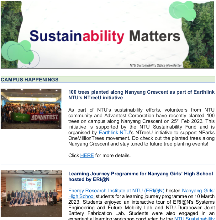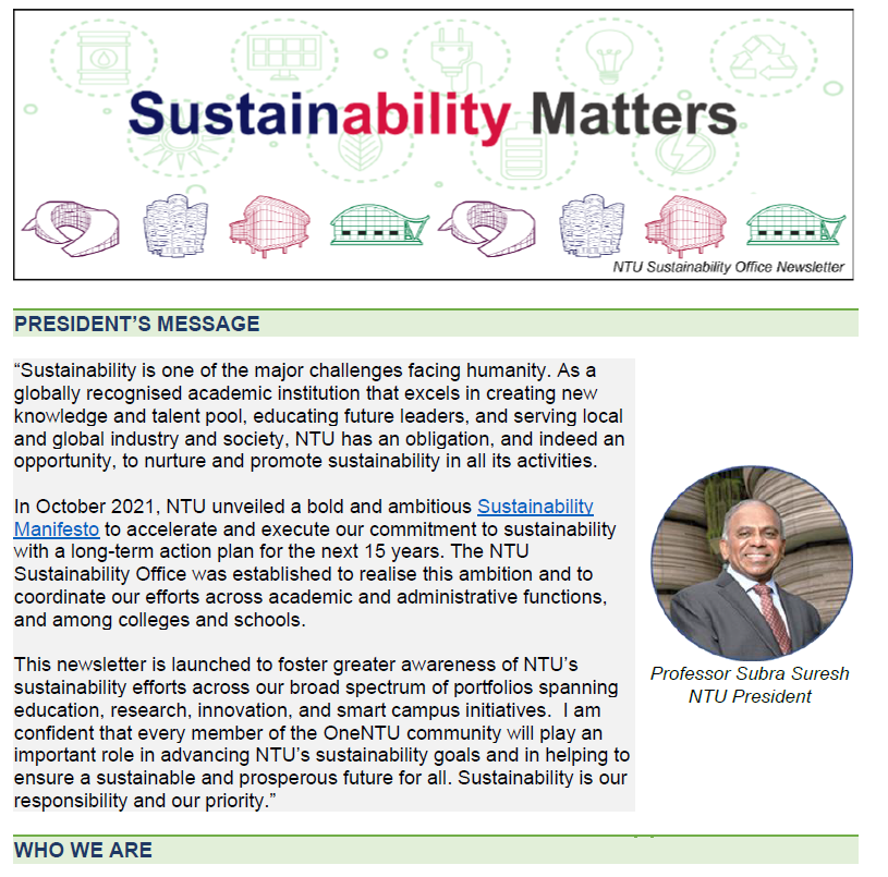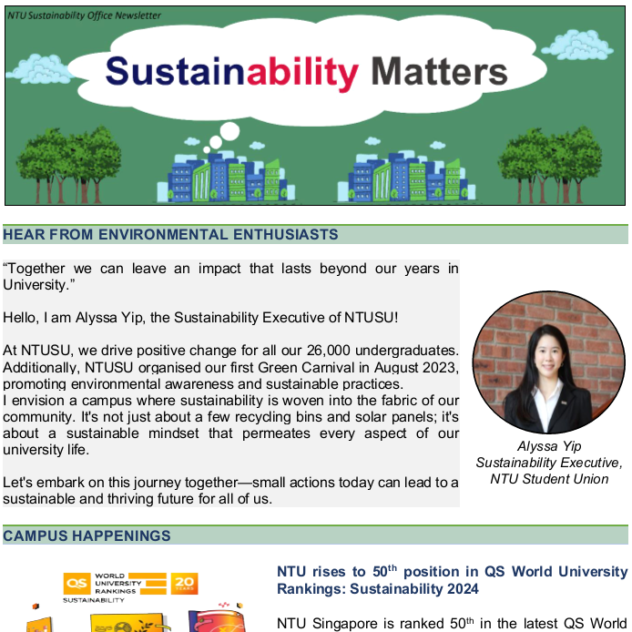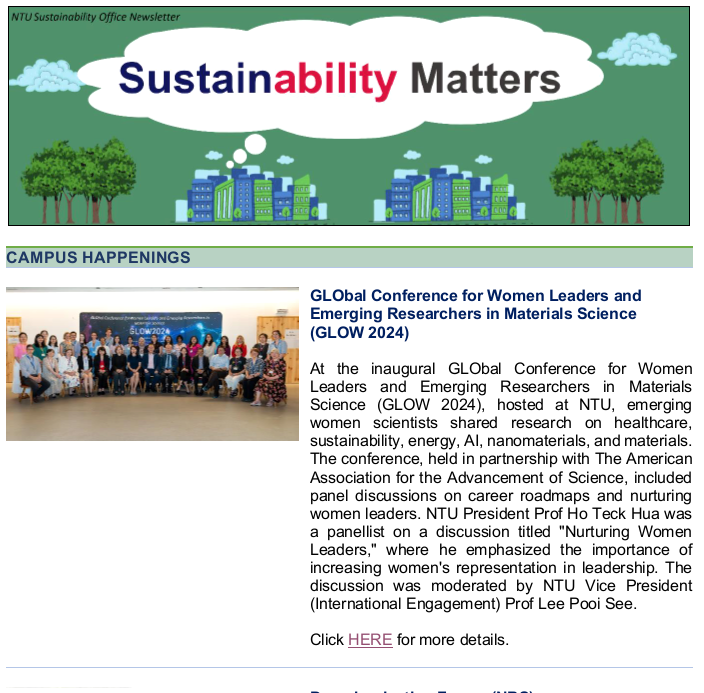 As a leading research-intensive university, NTU acknowledges the need and responsibility to respond to environmental, social and economic challenges. Our commitment to developing innovative solutions to global sustainability challenges runs deep. Discover NTU's commitment to United Nations' Sustainable Development Goals.