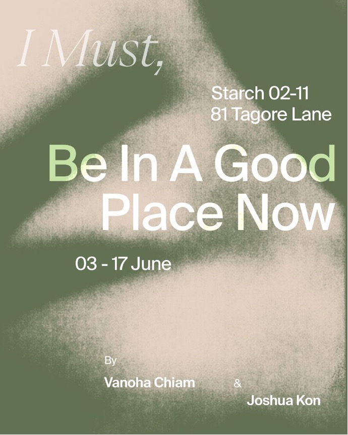 I Must, Be in A Good Place Now features two bodies of works unpacking themes of vulnerability, intimacy, and identity. Joshua Kon and Vanoha Chiam revisit concepts and explorations surrounding the body to uncover a renewed understanding of their practice and sense of self.