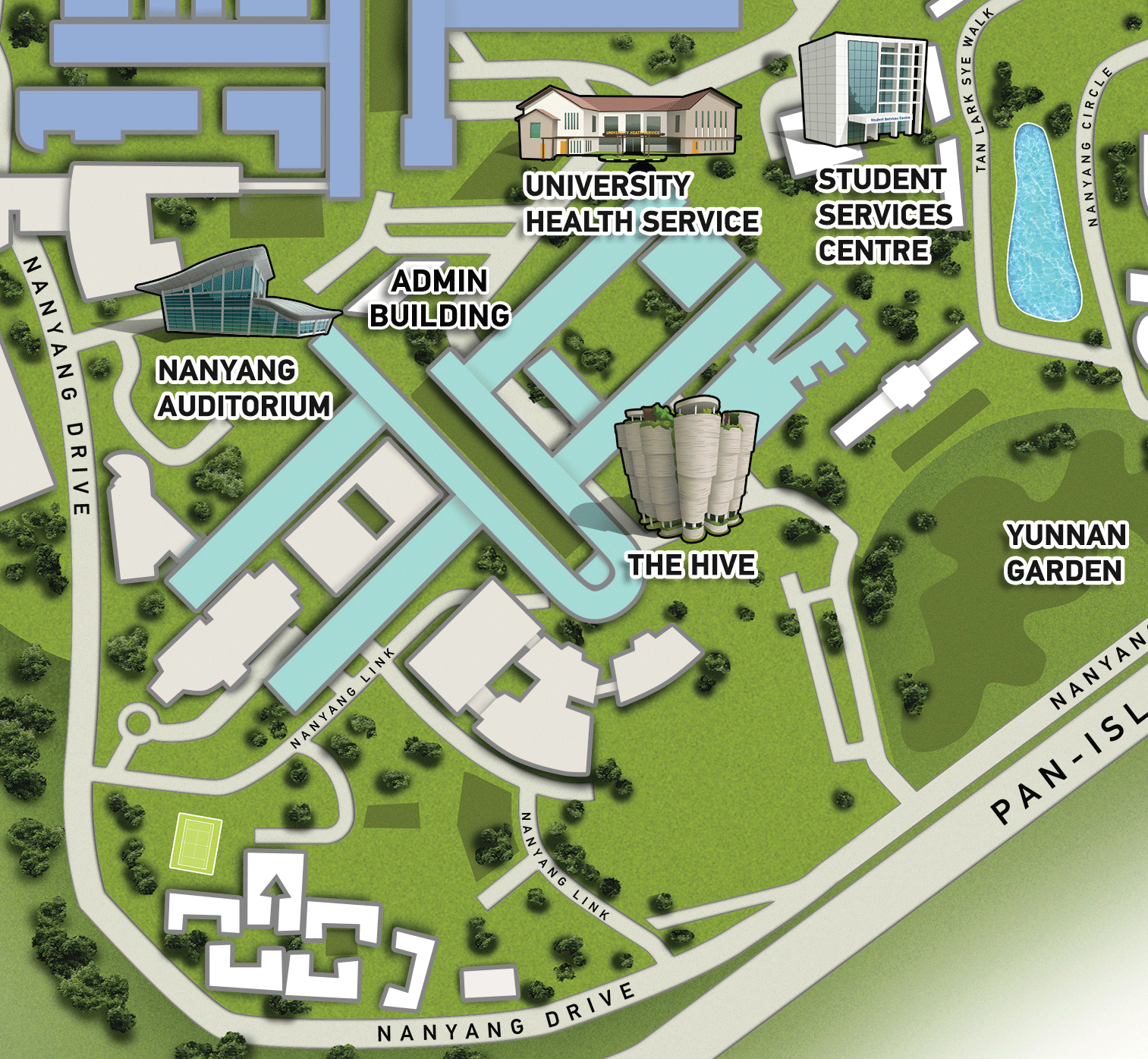 NTU Office of Admissions does not conduct guided campus tours. Should you wish to visit NTU Main campus on your own, below are 2 suggested walking routes (please click on North Spine or South Spine) for your reference: