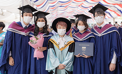 | Like mother, like daughterTwenty-one years ago, alumna Yang Xin celebrated her Master’s degree with her husband and their baby daughter. Fast forward to 2021 and Yang Xin repeats the Kodak moment with her daughter, who graduated with a double degree in Accountancy and Business. And where’s her son in the earlier photo? No need to squint, he was unborn in her belly then!