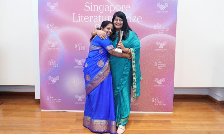 Dr Prasanthi Ram with her mother at the Singapore Literature Prize 2024 ceremony.