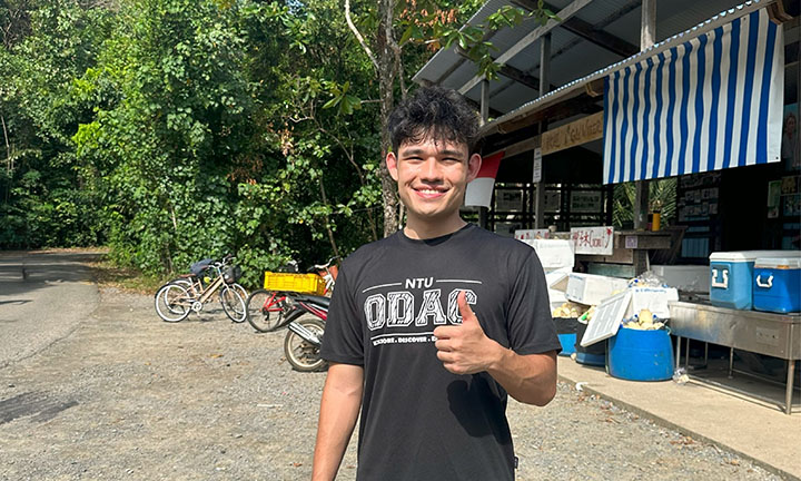 Third-year Computer Science student beneficiary Spyridon Giakoumatos at Pulau Ubin last year, as part of NTU Outdoor Adventure Club's Firelight Camp.