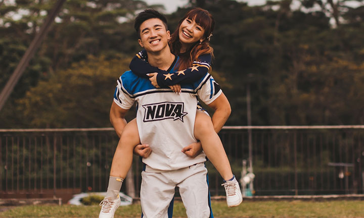 Calleigh (wife): We met when we were both NTU hall cheerleaders. He was the captain for the Hall 1 cheerleading squad while I was from Hall 7. We spent quite a lot of time training for a performance for a recruitment activity.