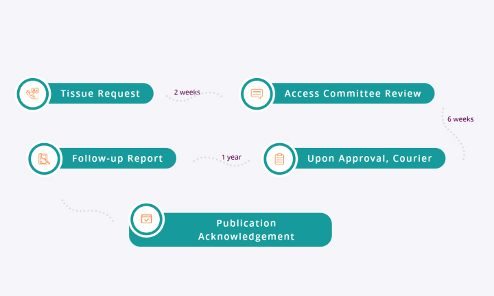 Requests for tissues are examined strictly and transparently by an Access Committee that comprises scientists from multiple research institutions nationally. The study protocols submitted for tissue requests will need to be compliant with the Human Biomedical Research Act (HBRA). No restricted research involving the combination of human and animal components is allowed for any study.