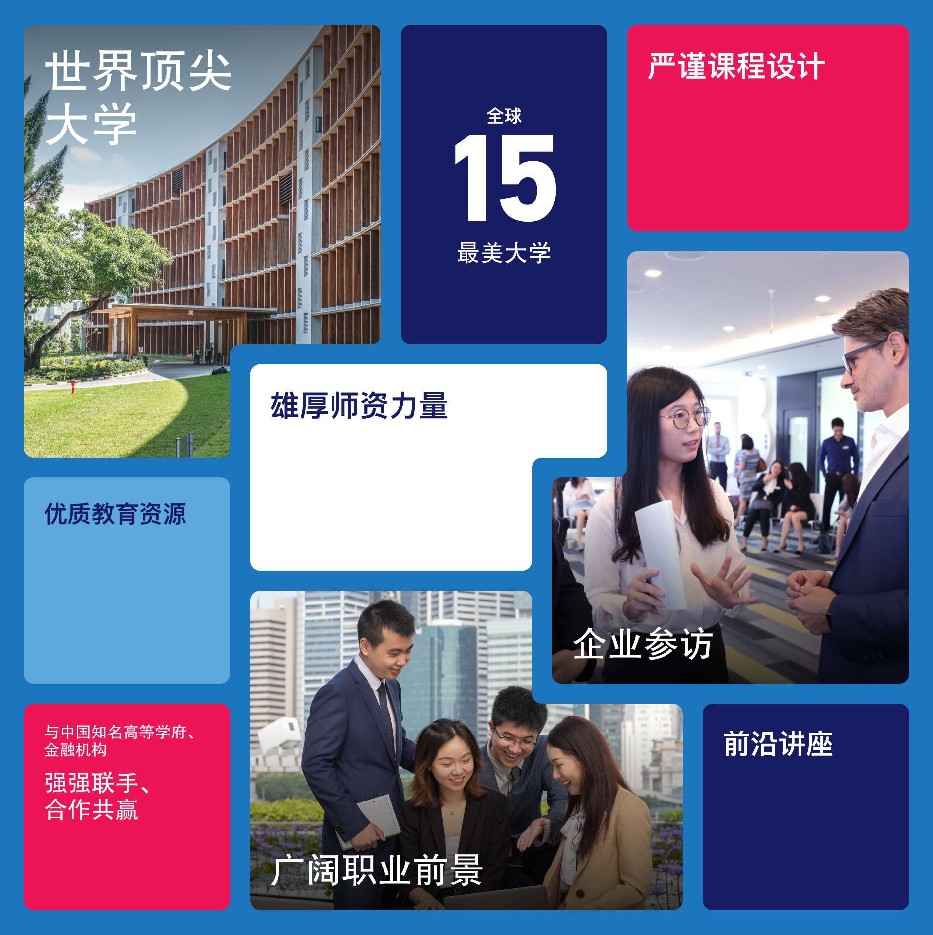 新加坡不仅是亚太地区重要的金融、贸易、航运中心,也是东西方文化交流的枢纽,为学生提供多元文化、多元视角。课程依托于南洋商学院对东西方优秀教育体制的借鉴,取其精华,增添适合培养具有国际竞争力的亚太金融人才的内容,帮助学生开拓国际视野。课程特有的中新两地学习之旅及相关专题讲座为学生提供诸多与知名跨国企业、金融机构以及业界精英沟通交流的机会,深入了解各地金融市场和行业发展现状。
