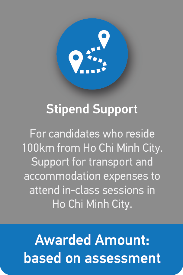 - The stipend is to support these candidates with expenses for transport and accommodation to attend the in-class sessions in Ho Chi Minh City.