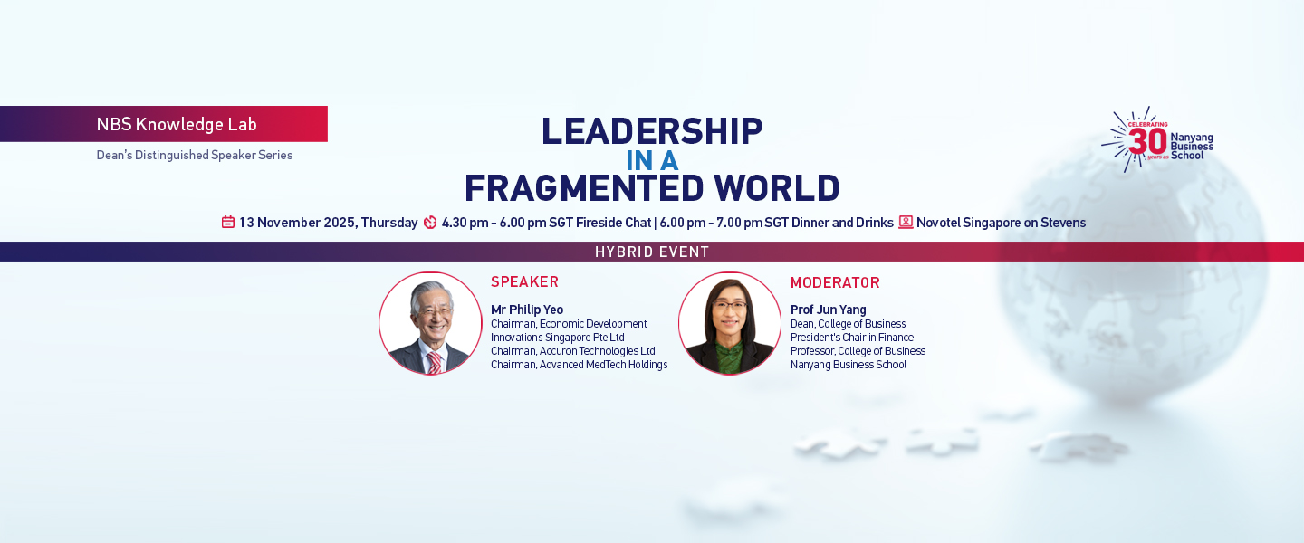 Learn MoreA premier business school within a leading technological university, Nanyang Business School (NBS) is where business meets technology and ideas drive progress. Consistently ranked among the world’s best, NBS is one of the most established providers of business and management education in the Asia-Pacific region.
