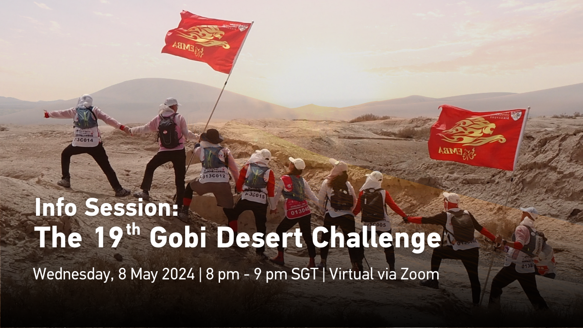 We invite you to attend the info session to learn more. You'll hear from Chen Dong, NBS Gobi Desert Challenge Chairman, who will share his firsthand experience conquering the challenges of the Gobi Desert.