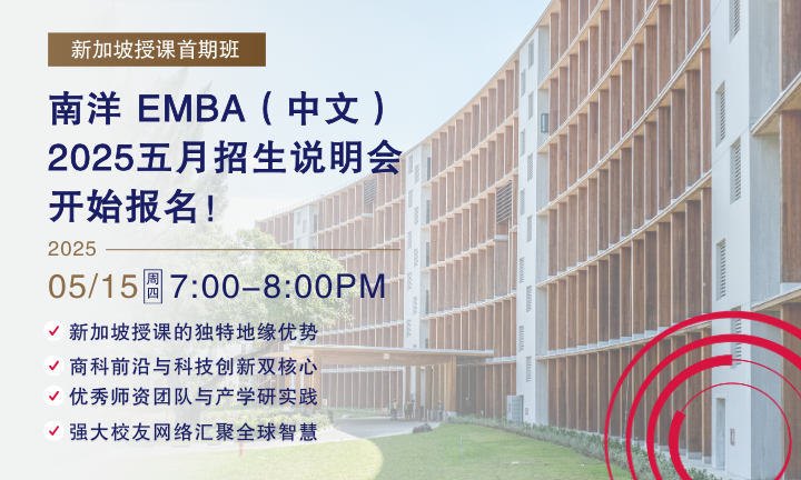 5月15日 | 南洋 EMBA(中文)新加坡首期班2025最后一场招生说明会