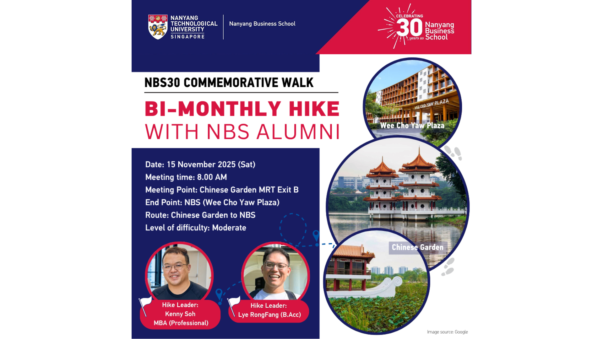 This November, join us for a special commemorative walk to mark the 30th anniversary of Nanyang Business School!