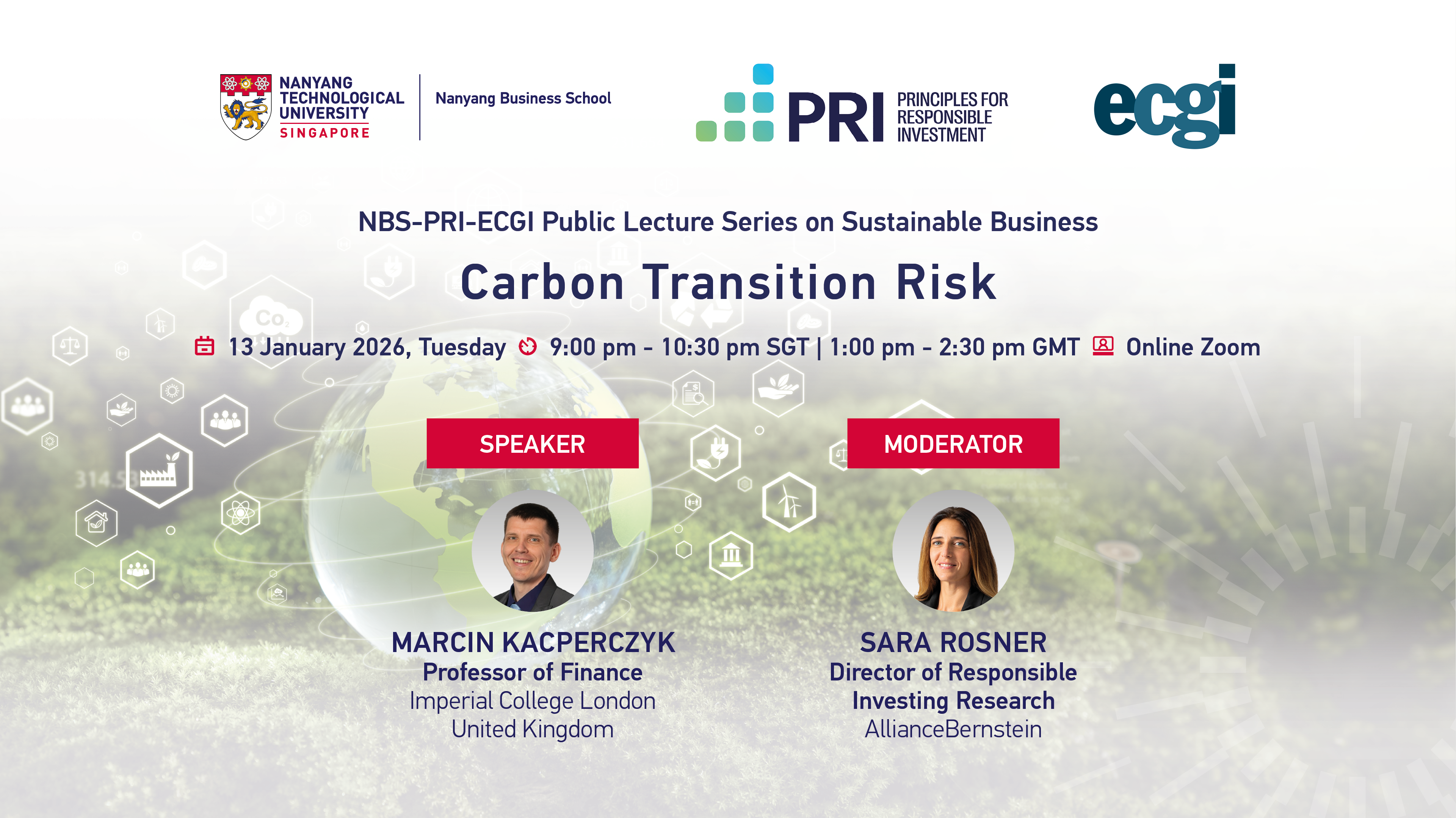 The NBS-PRI-ECGI Public Lecture Series is a new global joint initiative between Nanyang Business School (NBS), Principles of Responsible Investment (PRI) and European Corporate Governance Institute (ECGI) to facilitate the knowledge exchanges between academics, practitioners, and policymakers in sustainable business.