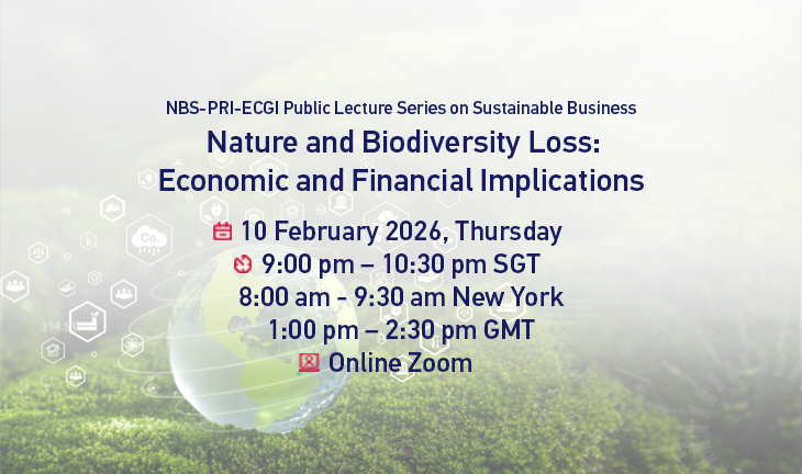 The NBS-PRI-ECGI Public Lecture Series is a new global joint initiative between Nanyang Business School (NBS), Principles of Responsible Investment (PRI) and European Corporate Governance Institute (ECGI) to facilitate the knowledge exchanges between academics, practitioners, and policymakers in sustainable business.
