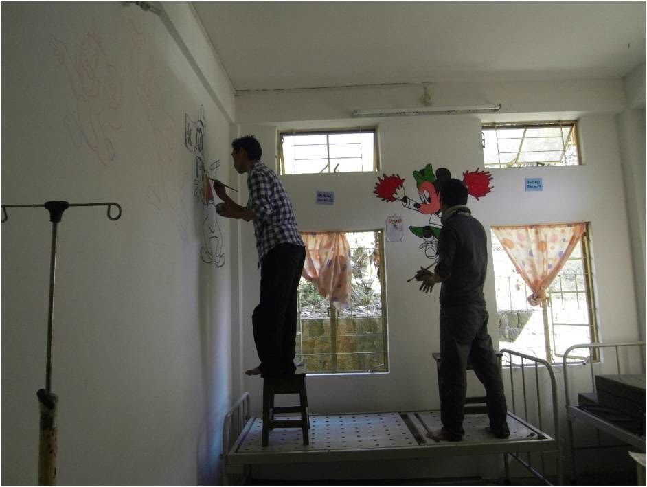 Volunteers from SpeakGuru Foundation help to spruce up the paediatric oncology ward at a local hospital in Kohima