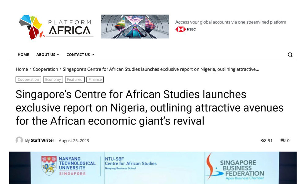 NTU-SBF Centre for African Studies gets press coverage in this African Business article.