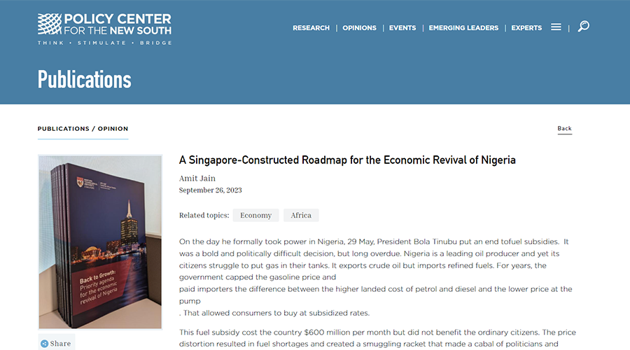 Centre Director and Author Amit Jain captures the essence of his policy recommendation report Back to Growth: Priority Agenda for the Economic Revival of Nigeria in this article published by the Policy Centre for the New South.