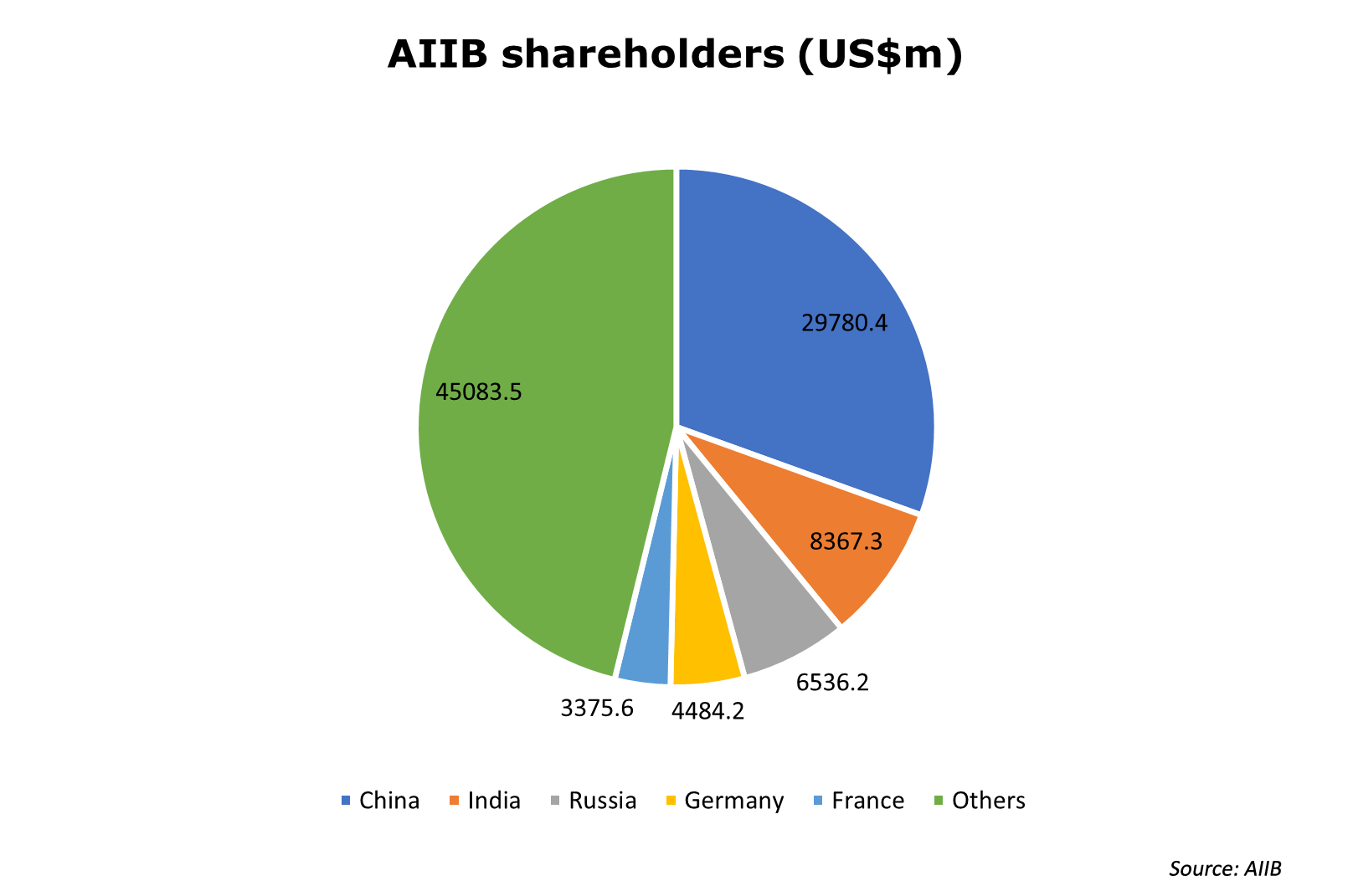 Founded in 2015, as an alternative to the Western dominated World Bank Group of lending institutions, the AIIB invests in Africa as part of its mandate to boost infrastructure ties between the continent and Asia. China is the bank's dominant shareholder with more than 30% of the equity, followed by India with 8.57%. Singapore is also a minor contributor to the AIIB having invested US$250 million into the pool that makes up its US$97.6bn total capitalisation.