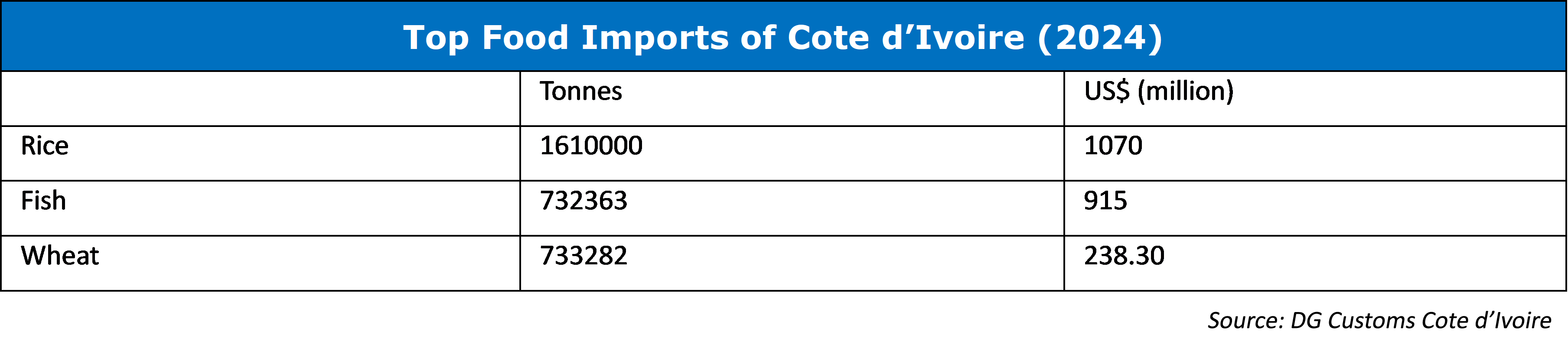 'Côte d’Ivoire spent $3.8B on food imports in 2024, led by rice and fish', Ecofin Agency, 13 November 2025