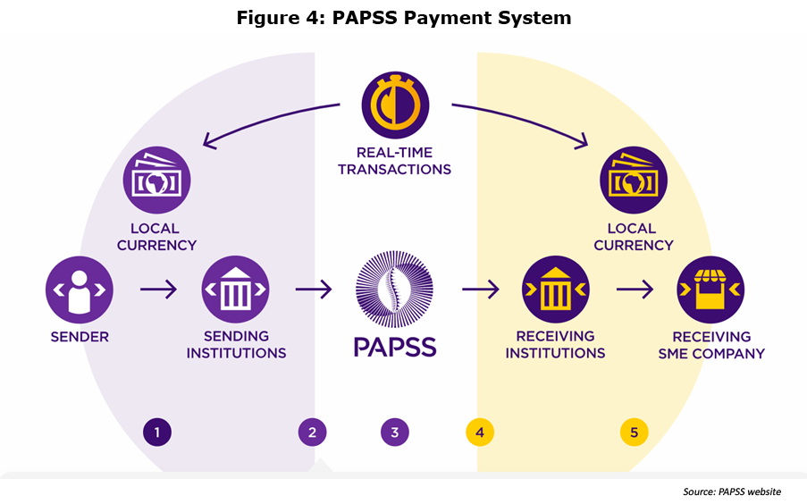 Afrexim Bank estimates that PAPSS will save the continent at least five billion dollars in transfer and settlement charges.[6] Central banks of all the State Parties are expected to sign up by the end of 2024 followed by all commercial banks a year later.[7] PAPSS also plans to collaborate with other regional and continental cross-border payments systems to extend its range beyond the African borders to support the growth of trade and investments with the African continent.[8] For investors, this creates opportunities for businesses in the banking sector and emerging fintech ventures across Africa.