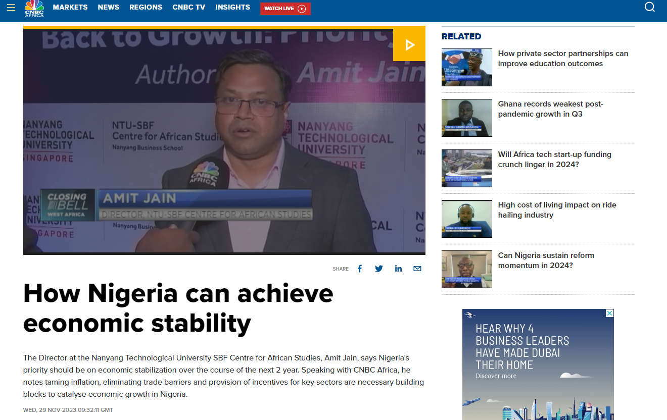 Published on 29 Nov 2023 How Nigeria can achieve economic stability Amit Jain says that taming inflation, eliminating trade barriers and provision of incentives for key sectors are necessary building blocks to catalyse economic growth in Nigeria