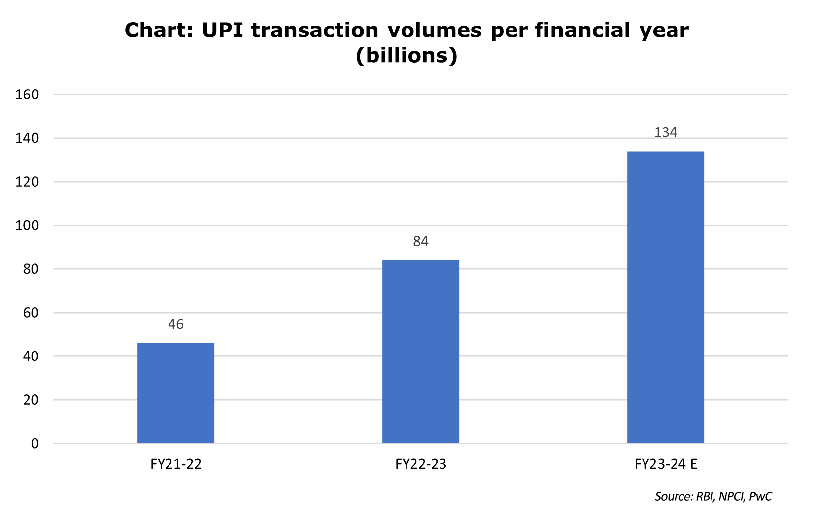 UPI has seen exponential growth in the volume of transactions. Beginning at about 100,000 transactions per month in 2016, the payments interface registered 15 billion payments in August 2024; collectively amounting to more than US$240bn.[12] It has also emerged as a leading mode of payment among businesses, accounting for nearly 75% of retail transactions in 2023. Its mobile first, QR enabled, integrated and low-cost nature has made it a favourite among small medium and micro enterprises. Equally, the financial trail acquired through UPI has simplified business profiling and risk quantification for lenders. As a result, more accurate credit scores can be speedily assigned and loans better tailored for inviduals and businesses.