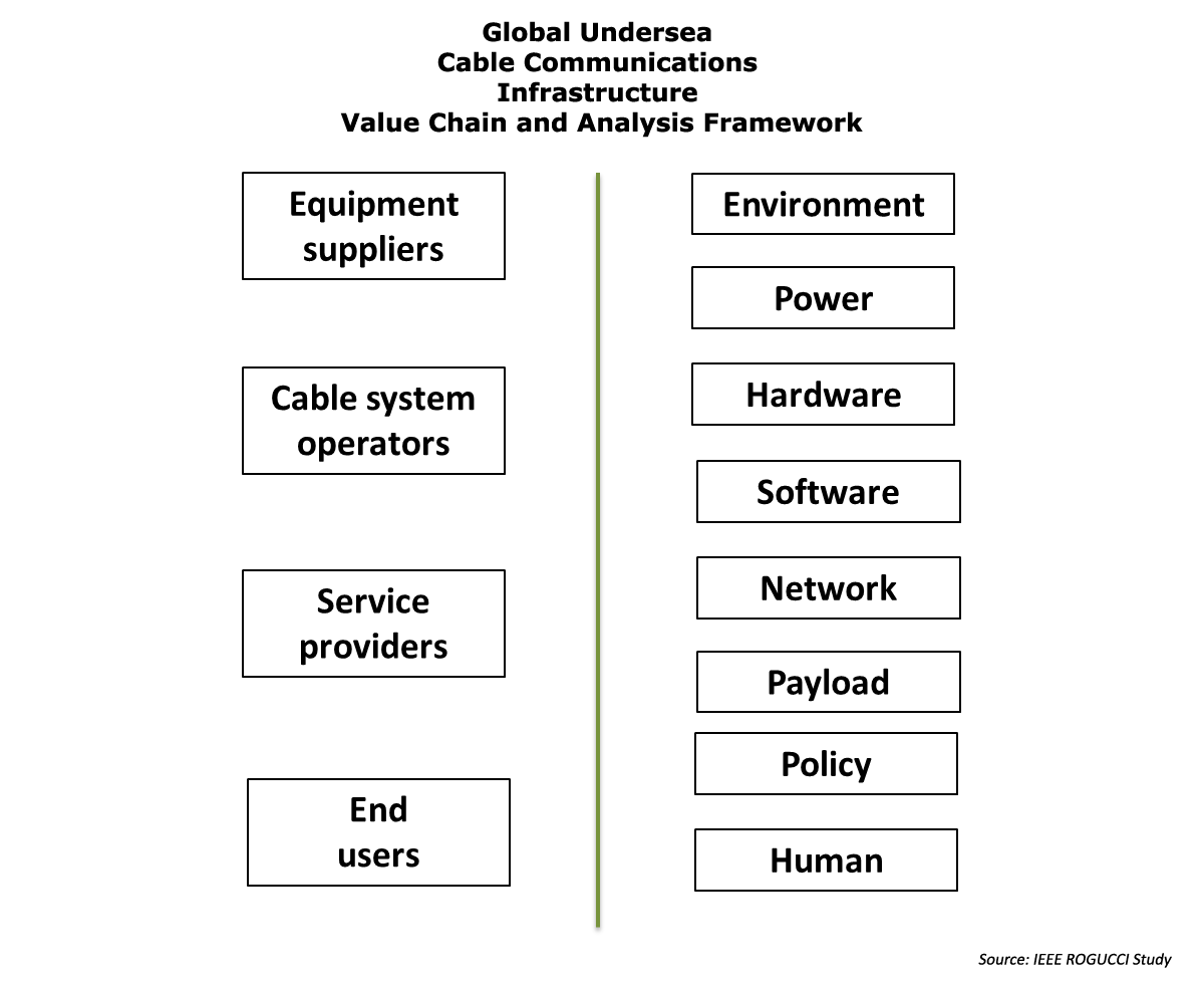 African governments are seeking for international laws and frameworks to be strengthened to protect undersea cables.[6],[7] The near total dependence on undersea cable for transferring high speed data has made the global undersea cable communications infrastructure (GUCCI) strategically important. It has also made it vulnerable to interruptions caused by cuts – accidental or otherwise.[8],[9],[10] Fixing undersea cables is an expensive and often arduous proposition. And in a highly politicised geopolitical environment the security imperative for global undersea cables has become exigent.[11],[12],[13]