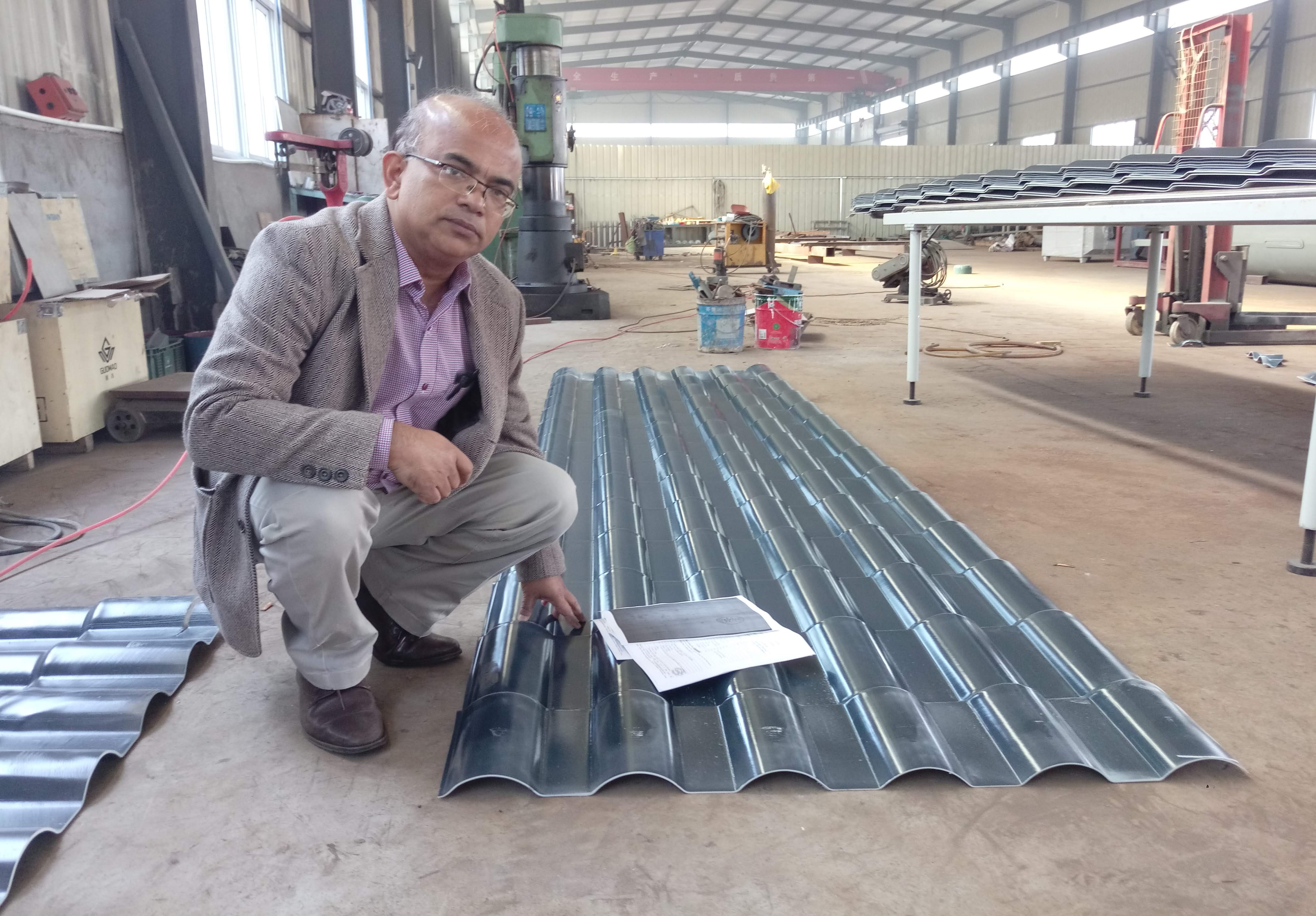 NivéSal's Managing Director Saikat Chowdhury testing the PVC roofing sheet before installation in Rwanda