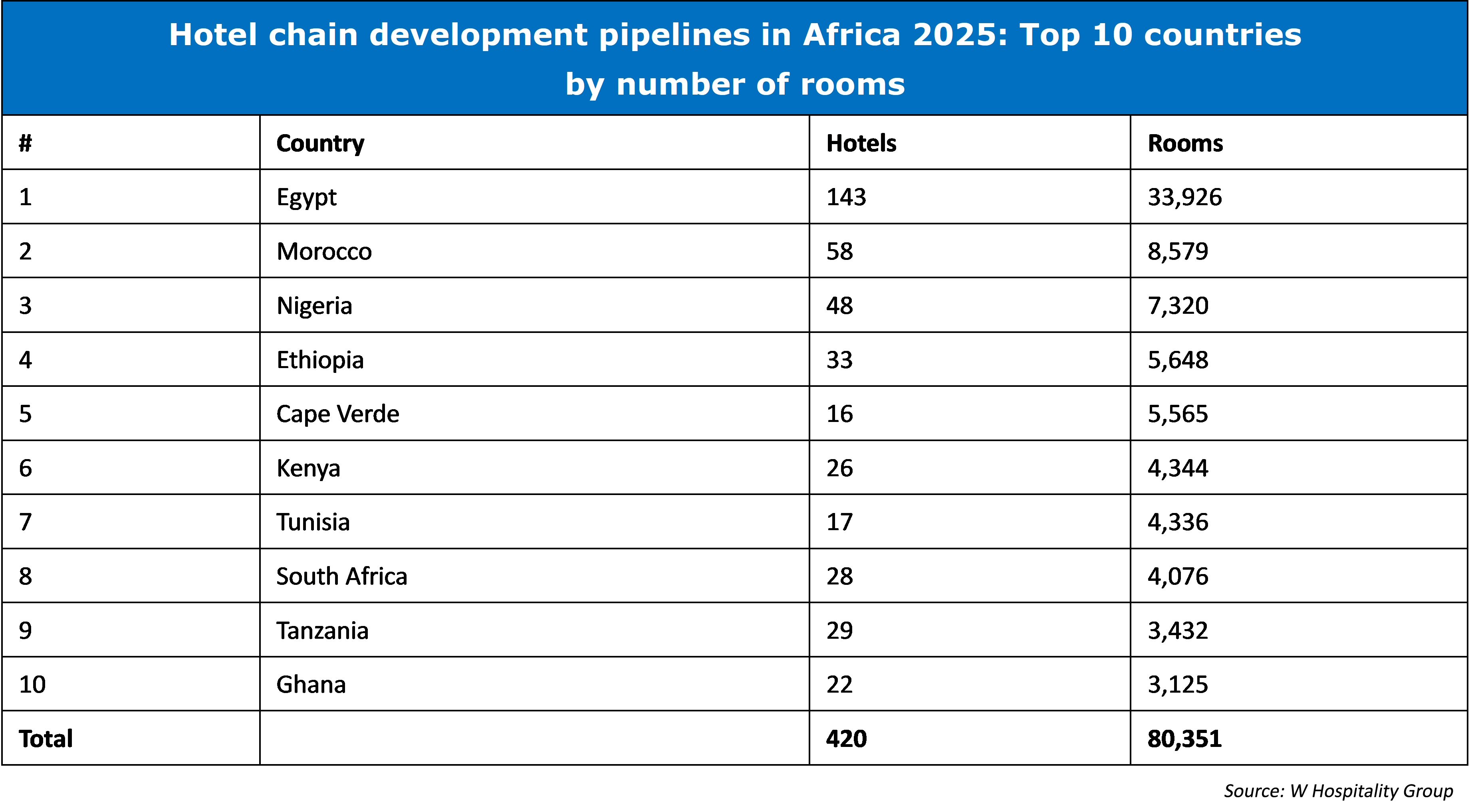 'Hotel chain development pipelines in Africa 2025', W Hospitality Group, Accessed on 16 October 2025