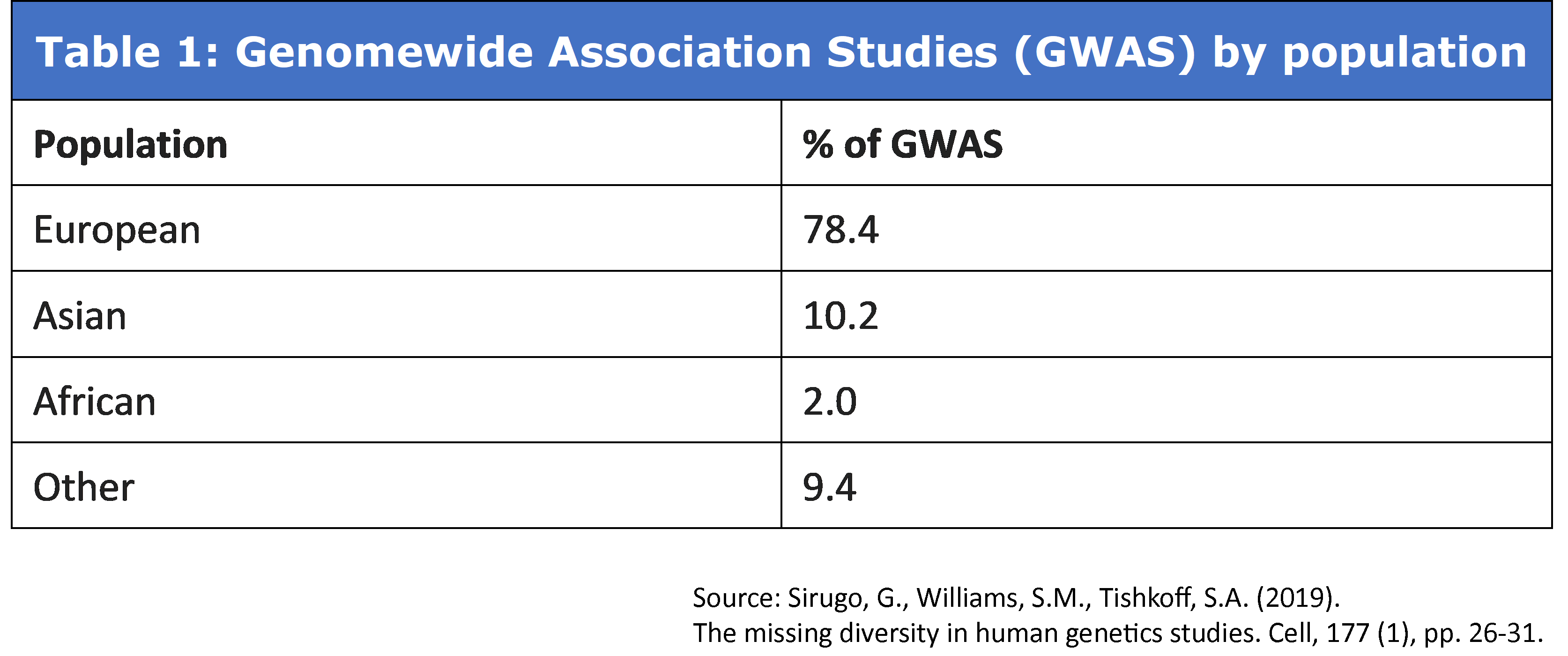 [3] Sirugo, G., Williams, S.M., Tishkoff, S.A. (2019). The missing diversity in human genetics studies. Cell, 177 (1), pp. 26-31. Retrieved from https://www.cell.com/fulltext/S0092-8674(19)30231-4
