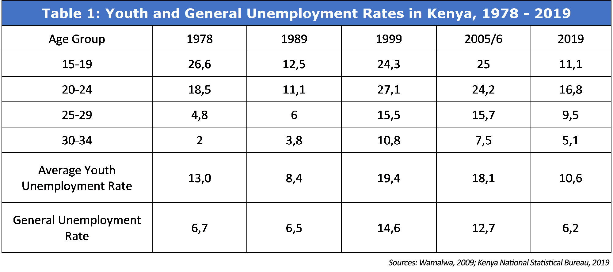 This problem is historical. Since 1978, the average youth unemployment rate has typically been substantially higher than the general unemployment rate in Kenya.