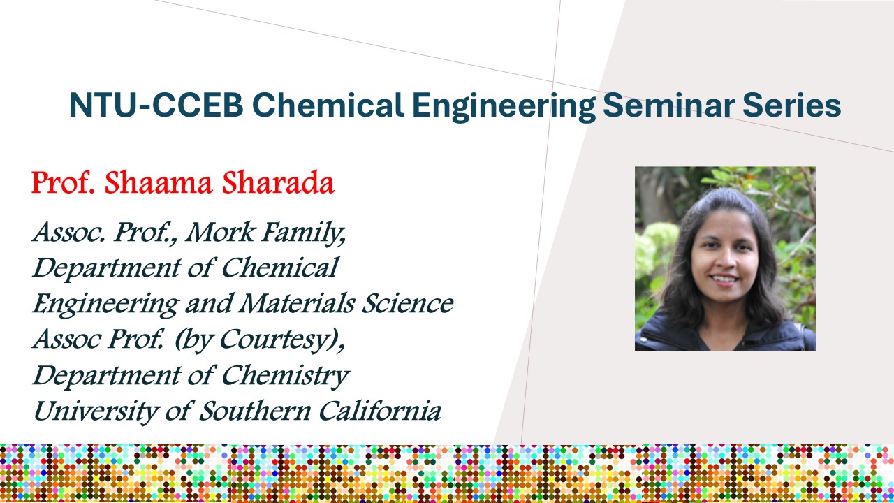 Prof. Shaama Mallikarjun Sharada is an Associate Professor in the Mork Family Department of Chemical Engineering and Materials Science and Associate Professor (by Courtesy) in the Department of Chemistry at the University of Southern California. She is interested in developing and applying computational chemistry tools for catalysis and sustainability. Her group is developing efficient algorithms, inspired from recent advances in signal processing, to make sophisticated rate theories more tractable for catalysis. Her group is working towards generating operando descriptions of catalytic reactions by simulating the dynamical evolution of active sites and reaction intermediates in emerging atom-efficient catalysts. The group is also establishing in silico frameworks for catalyst design and discovery for light-driven utilization of carbon dioxide.
