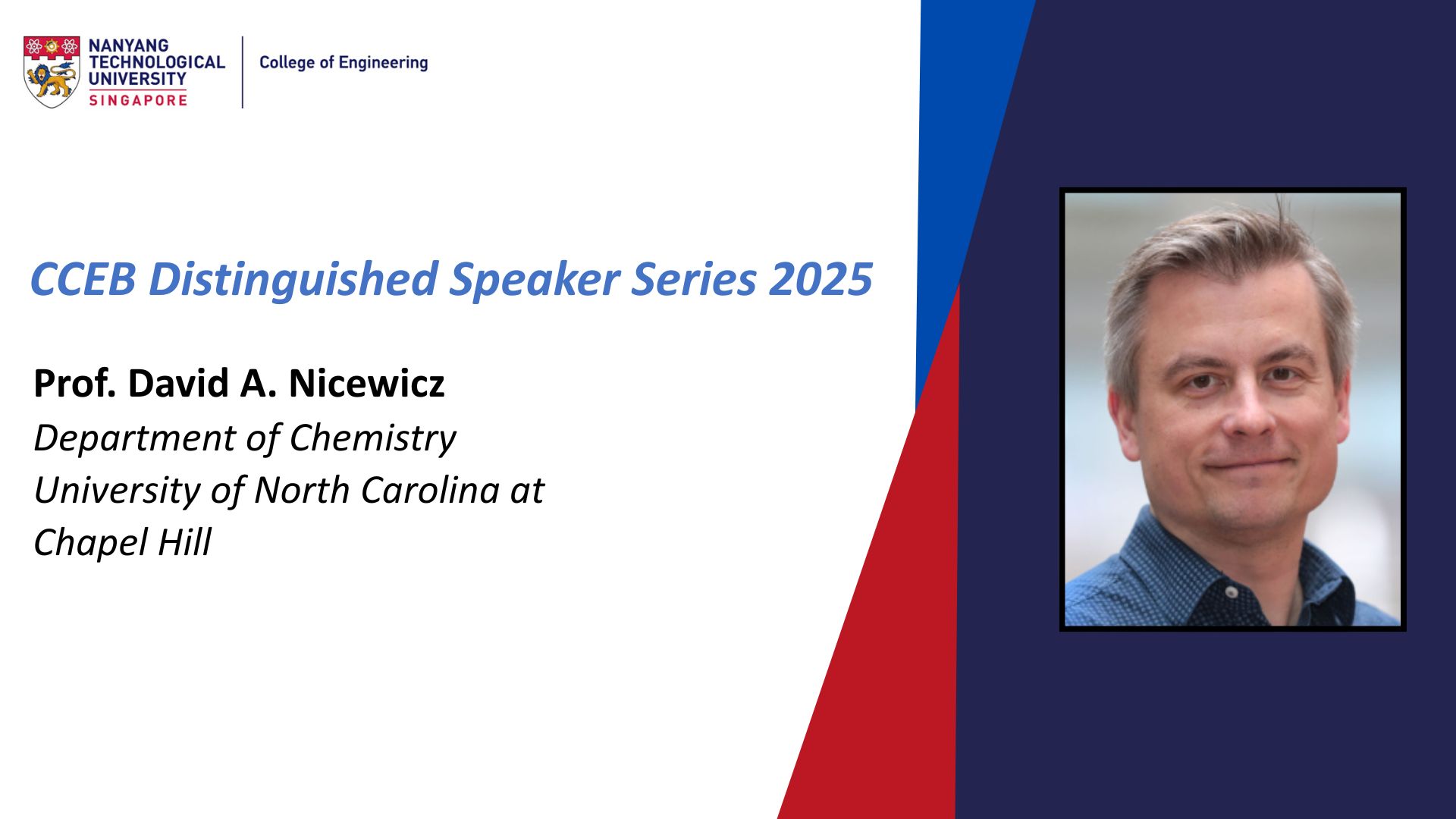 Professor David A. Nicewicz received his Bachelor’s (2000) and Master’s (2001) degrees in Chemistry from the University of North Carolina at Charlotte. He went on to earn his Ph.D. in Chemistry from the University of North Carolina at Chapel Hill in 2006 under the mentorship of Professor Jeffrey S. Johnson. His doctoral research focused on novel Brook Rearrangement transformations and culminated in the total synthesis of Zaragozic Acid C. Following his Ph.D., Professor Nicewicz undertook postdoctoral research as a Ruth L. Kirschstein Postdoctoral Fellow in the laboratory of Professor David W. C. MacMillan (2021 Nobel Laureate in Chemistry). In 2009, Professor Nicewicz joined the faculty at UNC Chapel Hill as an Assistant Professor. He was promoted to Associate Professor in 2015, Full Professor in 2018, and was named the inaugural Royce Murray Term Professor of Chemistry in 2020. He is also a co-founder of LED Radiofluidics, a company that offers imaging services and automated PET tracer modules.