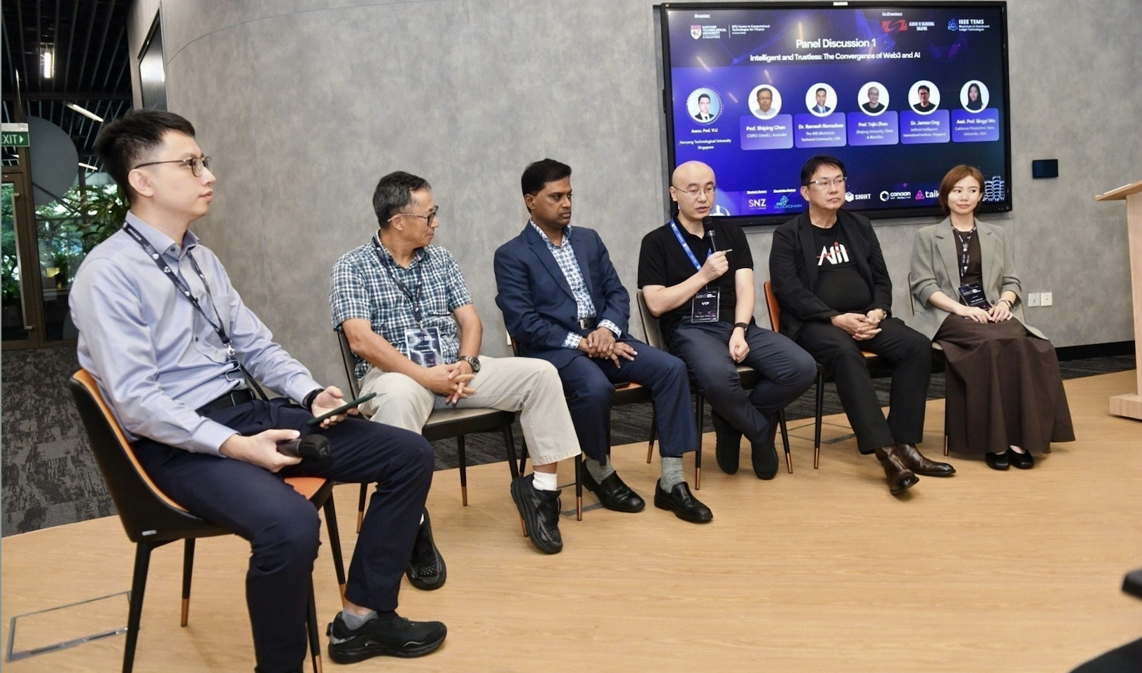 - Panel Discussion 2 centered on “Intelligent and Trustless: The Convergence of Web3 and AI,” bringing together leading voices from both academia and industry. The discussion addressed how generative AI can enhance Web3 user experiences, the application of smart contracts and autonomous agents in financial and social domains, and ways to improve trust in decentralized systems through technological innovation.