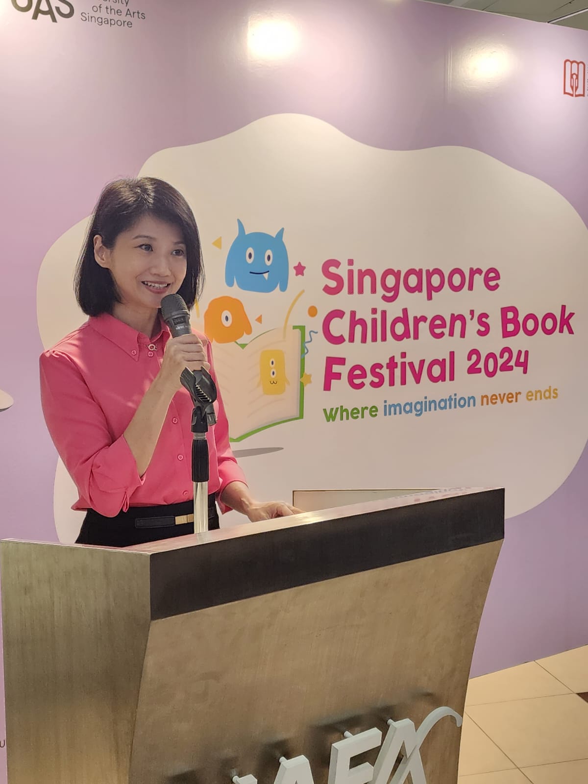 内政部兼社会及家庭发展部政务部长孙雪玲女士为新加坡童书节2024 主持开幕仪式。