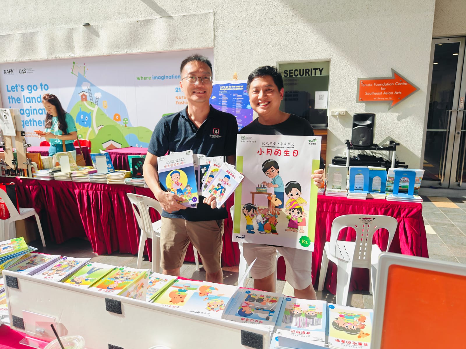 本院受邀参与了新加坡出版商协会与南洋艺术学院联合举办的首届新加坡童书节。该活动于2024年 6月 21日至 23日在南洋艺术学院举行,内政部兼社会及家庭发展部政务部长孙雪玲女士为活动主持开幕仪式。活动旨在推广本地童书,彰显新加坡绘本画家与作家的才华。本院在活动现场展出了我们开发出版的儿童读物,吸引了众多目光。例如《状元学堂 · 亲亲华文》小绘本以生动的插图和有趣的故事形式传递正向价值观,激发孩子们的阅读兴趣。