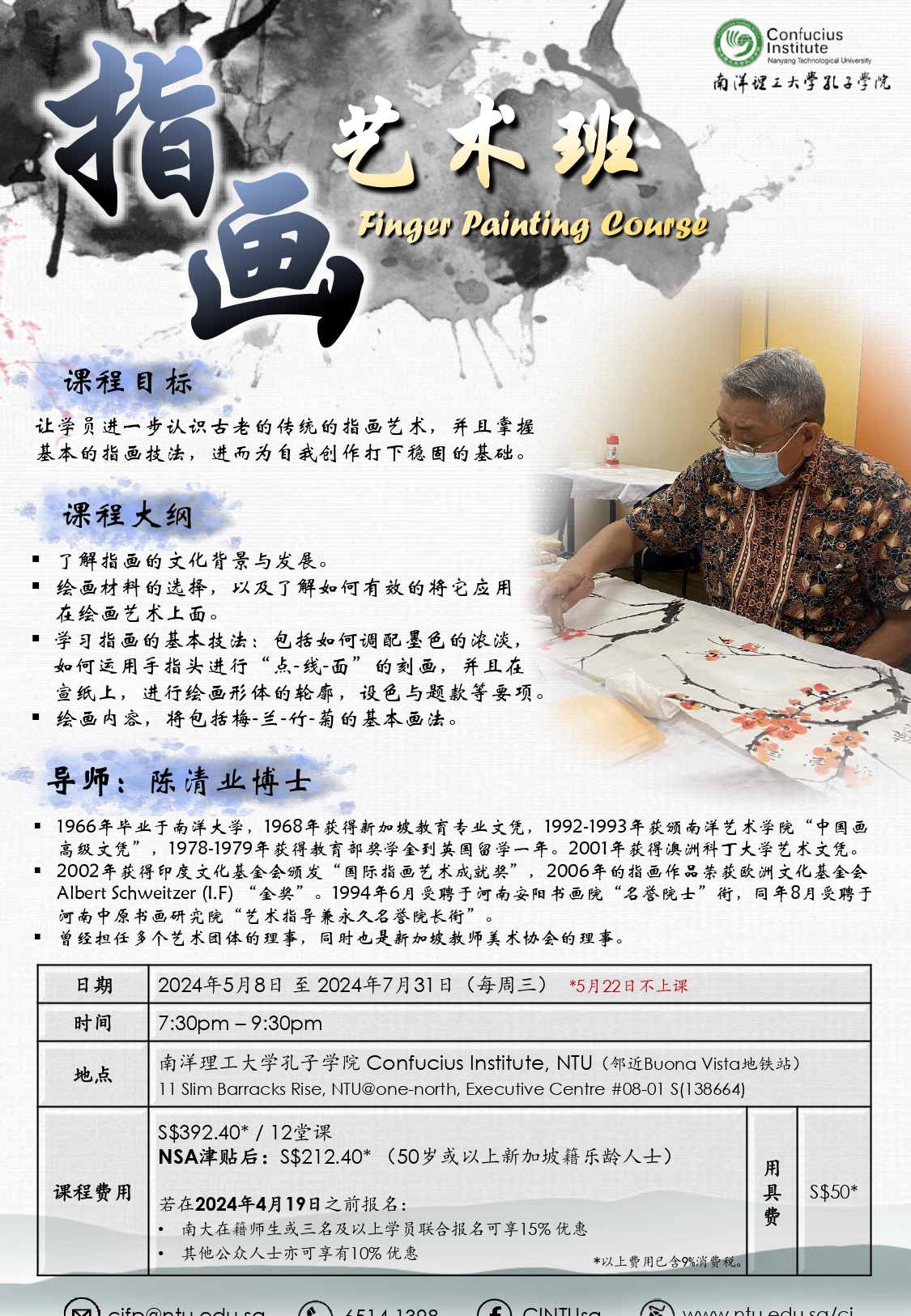 指画艺术班:如何运用手指头进行 “点- 线- 面” 的刻画,并且在宣纸上,进行绘画形体的轮廓,设色与题款等。