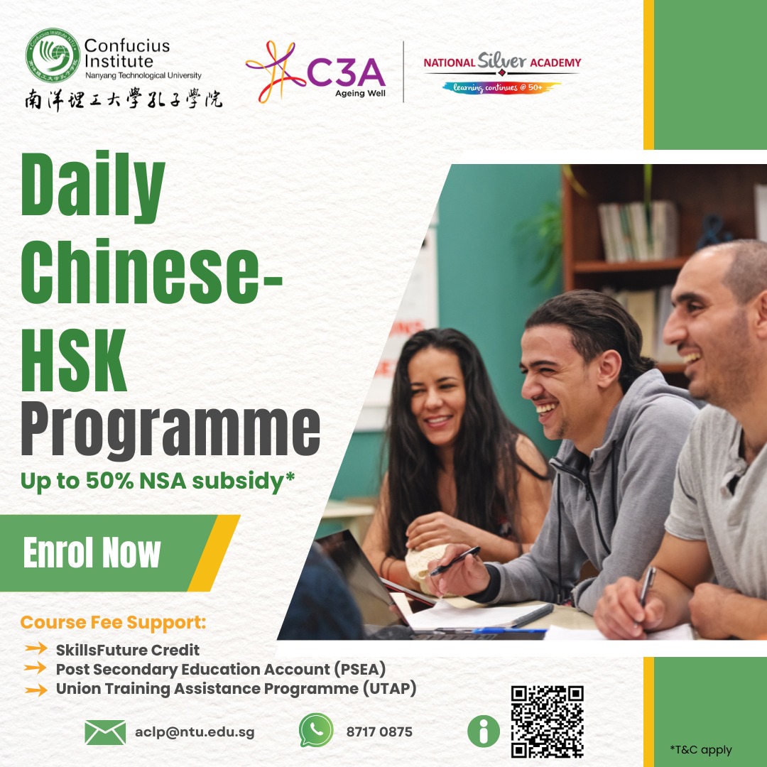 Book a placement test now! https://www.ntu.edu.sg/ci/programmes/adult-programmes/daily-chinese-hsk