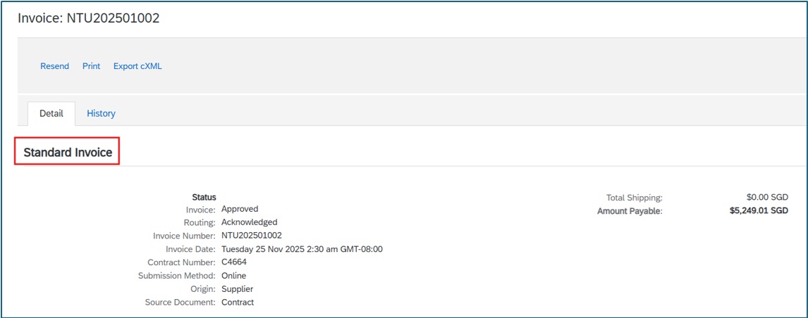 Before configuring your legal profile in Ariba, the invoice copy will show "Standard Invoice".