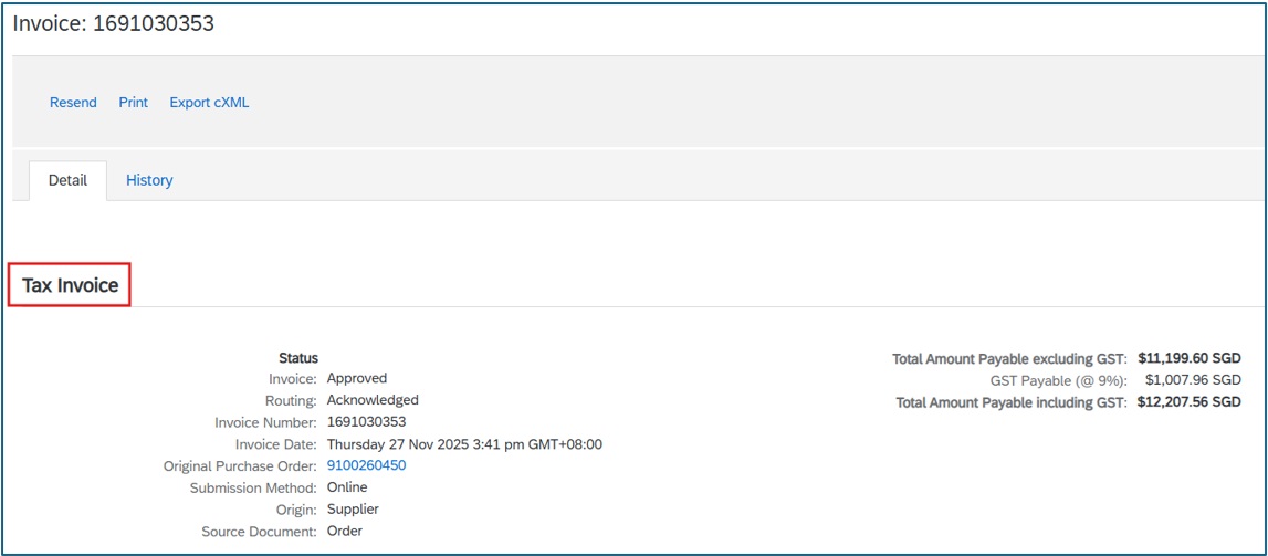 GST details in Ariba Network (AN) account’s legal profile is mandatory for Singapore