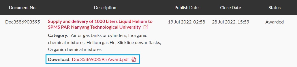 You can download the tender award results for relevant sourcing events on the Business Opportunities section of the NTU Supplier Portal.
