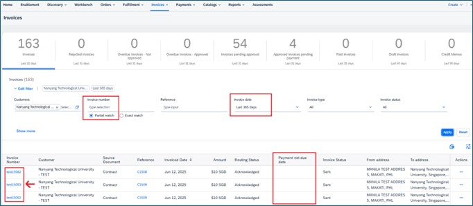 - The 'Payment net due date' for submitted invoices will be displayed.