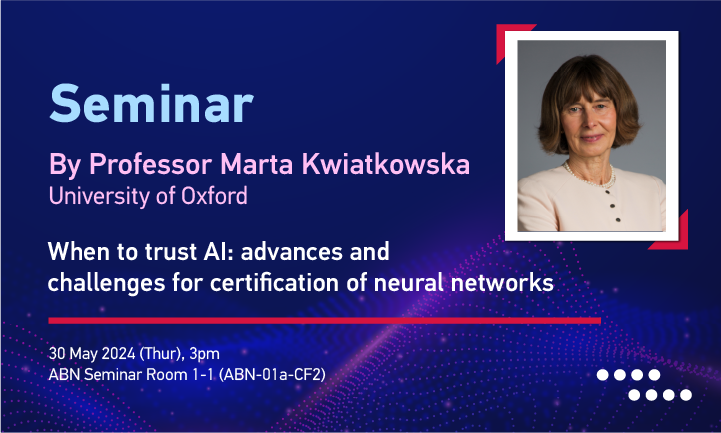 Seminar by Prof Marta Kwiatkowska (University of Oxford), 3pm Thu 30 May