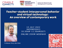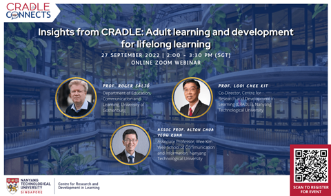 Events Upcoming Events Latest News Workers Are Leaving Jobs Over Culture, Not Pay: How SMEs Can Adapt Published on 24 Oct 2025 Congratulations to Dr Sally Ng for Winning Researchers' Day Best Poster Published on 15 Oct 2025 CRADLE Connects: Exploring Careers Research Collaborations in Singapore & Beyond Published on 23 Sep 2025 [New]Assessment and learning outcomes for generative AI in higher education: A scoping review on current research status and trends Published on 18 Oct 2024 Past Events Workshops & Classes CRADLE Connects: Exploring Career Research Collaborations in Singapore and Beyond 17 Sep 2025 02.00 PM - 04.45 PM The Arc LHN-TR+30 @ 63 Nanyang Drive Add to Calendar Admissions Outreach Apply For NTU AI4X Postdoctoral Fellowship 01 Aug 2025 - 31 Oct 2025 Add to Calendar Conferences & Seminars CRADLE Symposium: A Path Forward for the Future of Learning 05 Dec 2024 10.00 AM - 03.30 PM Add to Calendar Networking CRADLEConnect: Advancements in Brain Imaging: Looking into the Brain from Structure to Function 06 May 2024 02.00 PM - 04.30 PM Add to Calendar Networking Insights from CRADLE: Preparing Post-Secondary Education Institutions (PSEI) Learners for Changing Working Lives 05 Mar 2024 02.00 PM - 04.00 PM Add to Calendar Conferences & Seminars BrainConnects 2023 International Conference 19 Aug 2023 - 20 Aug 2023 Add to Calendar Conferences & Seminars The Science of Lifelong Learning for Wellness - Webinar 01 Jun 2023 04.00 PM - 05.00 PM Add to Calendar Networking CRADLE Connects 2023- Networking for Interdisciplinary Research 15 May 2023 01.30 PM - 03.00 PM Add to Calendar