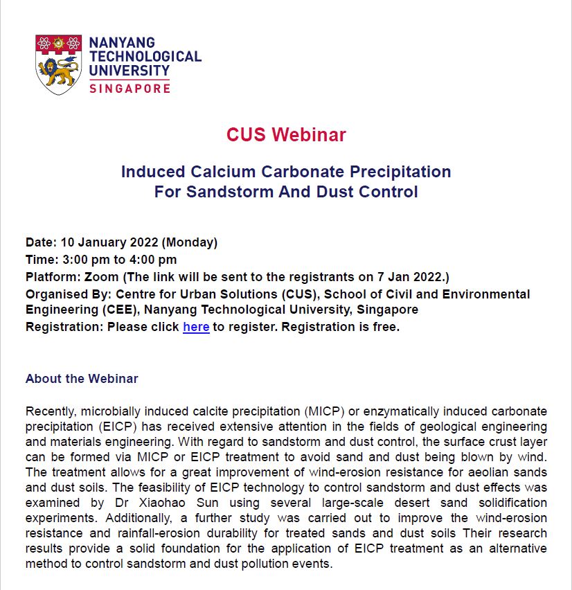 CUS Webinar: Induced Calcium Carbonate Precipitation For Sandstorm And Dust Control