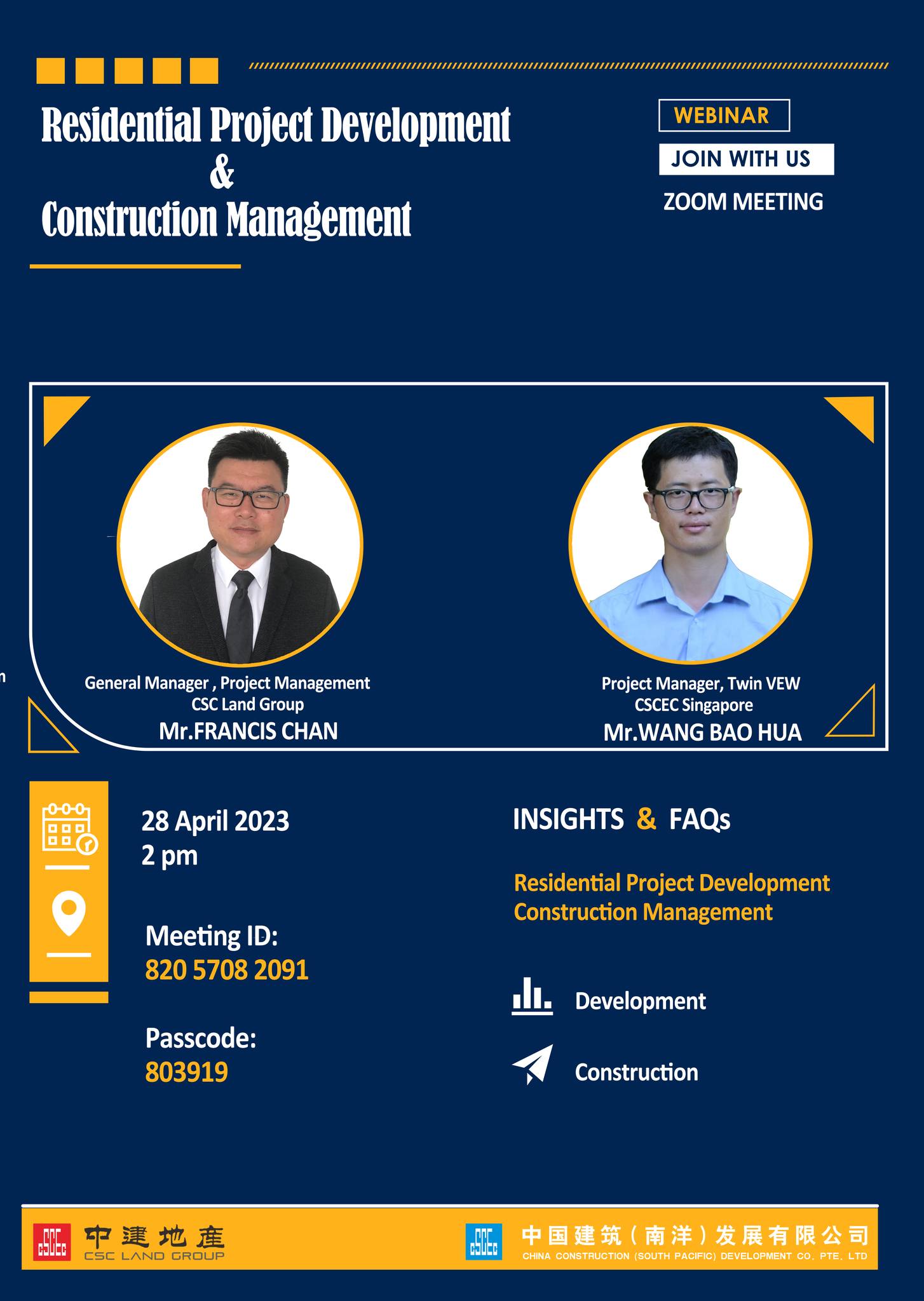 Sharing industry perspectives were Mr Francis Chan, General Manager of Real Estate Project Development at China Construction Group, and Mr Wang Baohua, Project Manager of the Twin VEW residential development at China Construction South Pacific. The session was moderated by Mr Sheng Yukun, General Manager of the Engineering Technology Center, who guided the discussion through the key stages of project planning and execution.