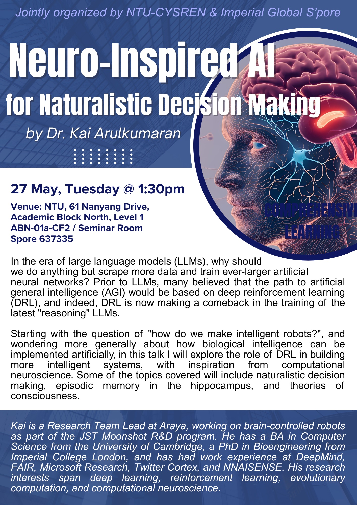 Seminar on 'Neuro-Inspired AI for Naturalistic Decision Making' by Dr Kai Arulkumaran