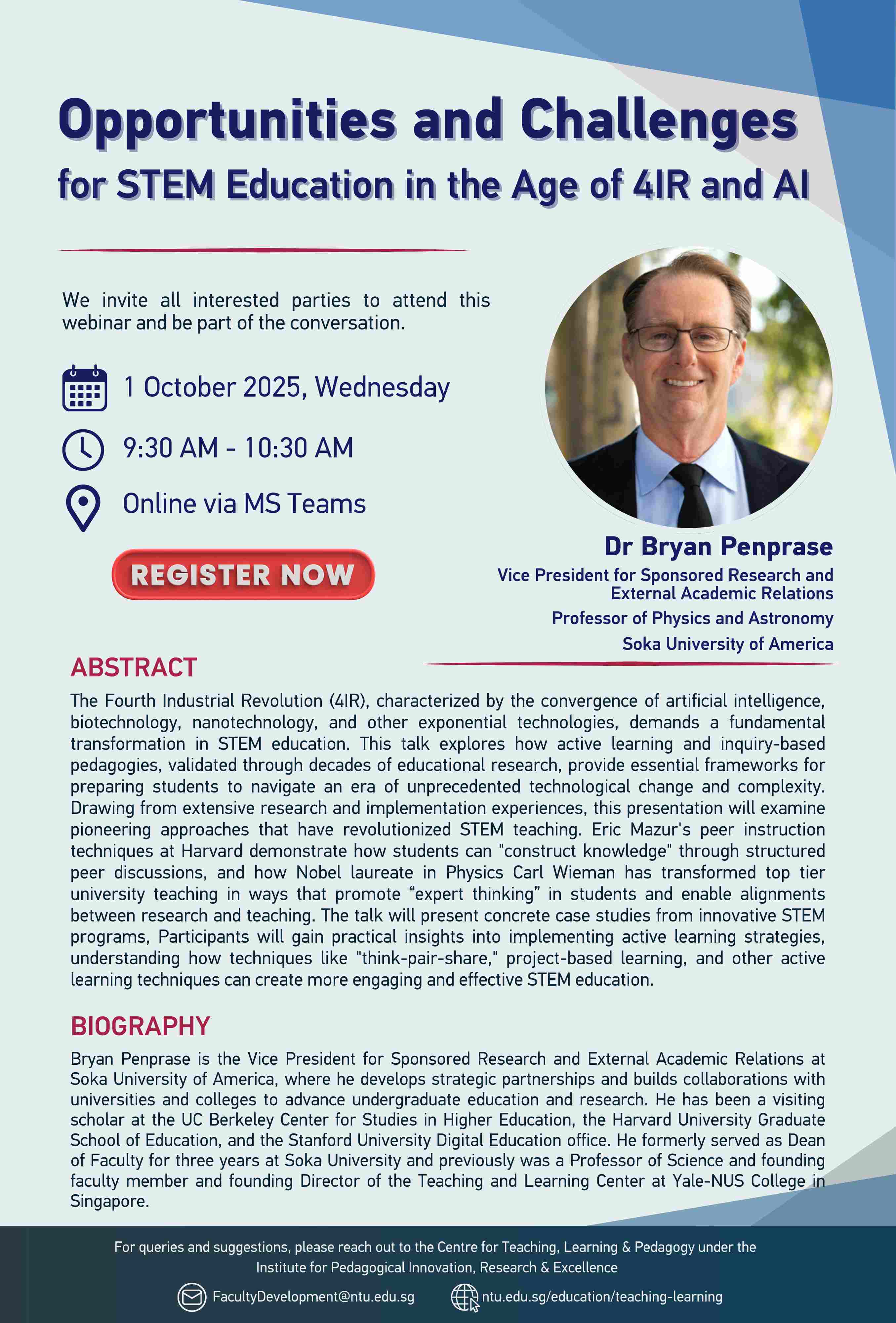 1 October (Wed) 9:30am-10:30am - Opportunities and Challenges for STEM Education in the Age of 4IR and AI by Dr Bryan Penprase
