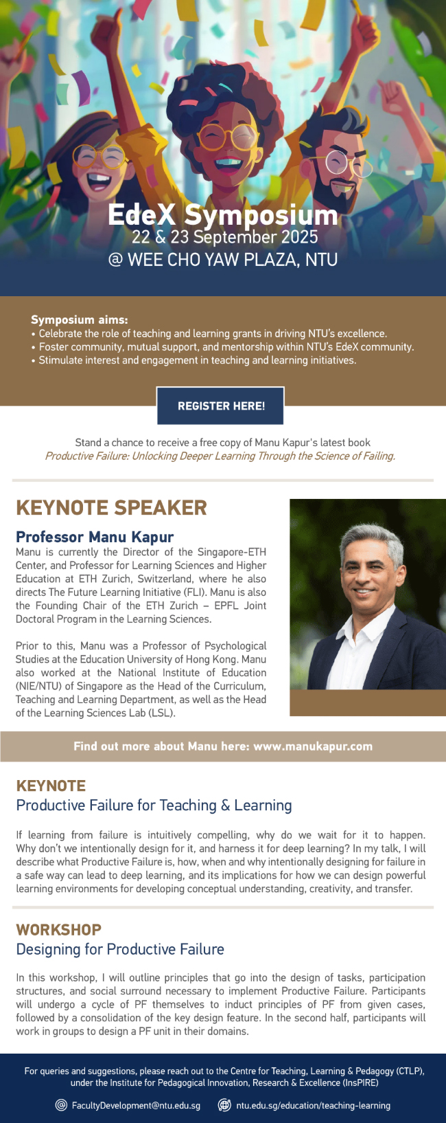22 September (Mon) 6:00pm-8:00pm - In Conversation with Professor Manu Kapur: Unlocking Deeper Learning through The Science of Failing