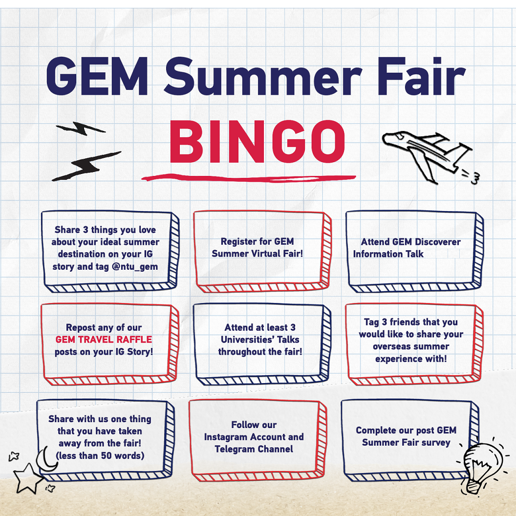 5. Winners will be announced by the following week through our Instagram (@ntu_gem) and our Telegram channel. They will also be notified via email.
